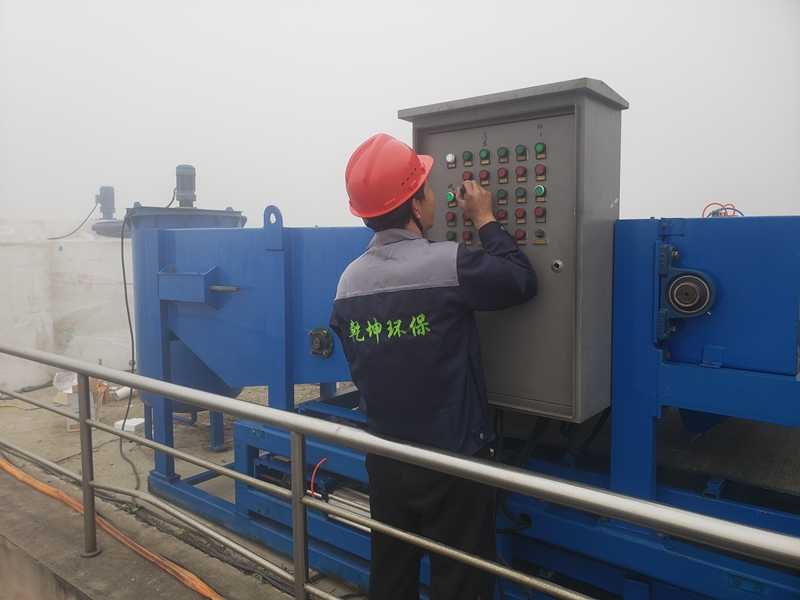污泥首先通過的是由乾坤環(huán)保設(shè)計制造的水中造粒器,它可使污泥與藥液發(fā)生無動力混合,充分發(fā)揮絮凝的作用。之后,污泥進入重力脫水區(qū),在該區(qū)域內(nèi),含固率大于1%的污泥可以直接進行脫水,脫水后的污泥再進入壓榨脫水區(qū),通過了雙重脫水的污