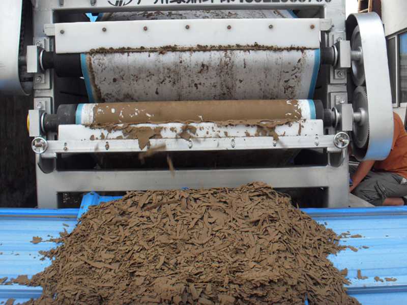 一級(jí)濃縮的出料,經(jīng)螺旋或者皮帶輸送機(jī)(也可直接連接)送入干化進(jìn)料箱。在螺旋布料器的作用下,物料被均勻的布在網(wǎng)帶上。經(jīng)預(yù)壓脫水后,隨著壓榨軸的變徑,壓力逐漸增大,達(dá)到脫水干化之目的,出泥干化之目的, 出泥含固率高達(dá)35%-45%。